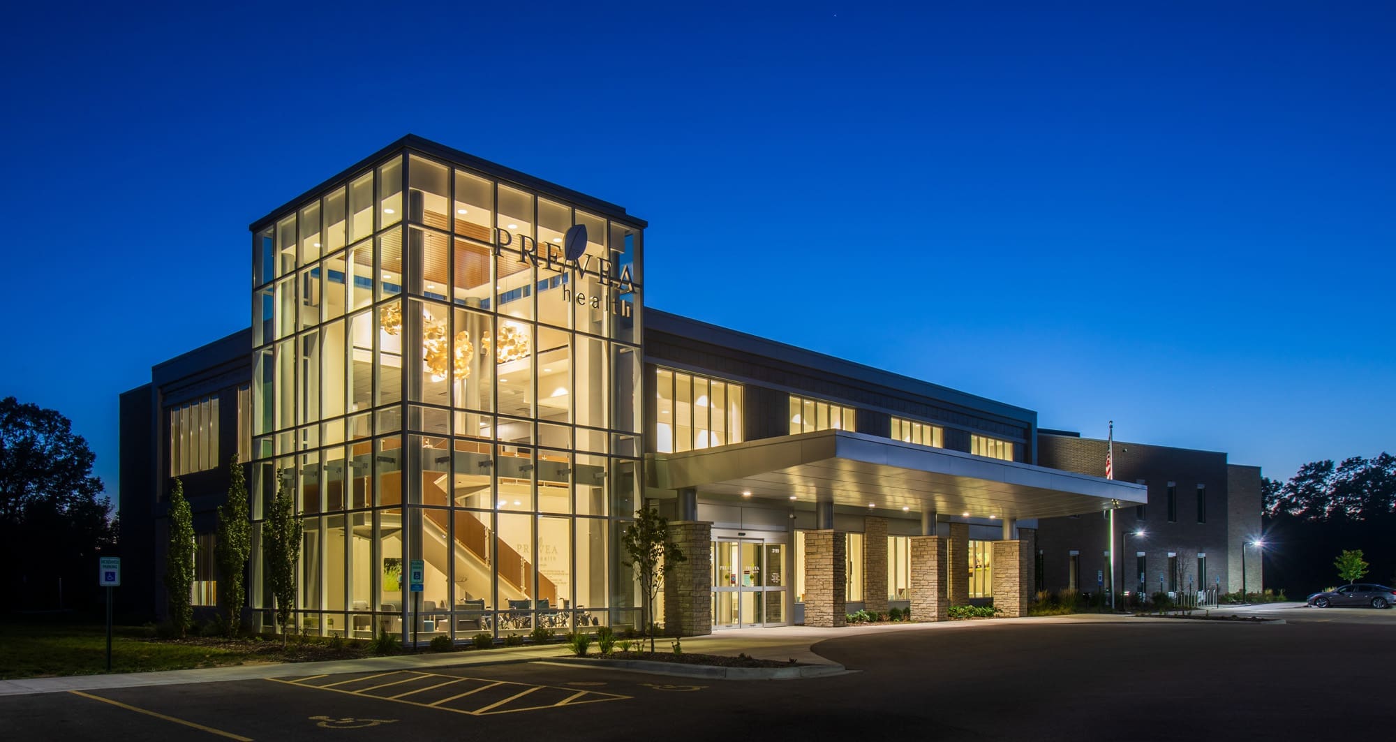 This 30,450-square-foot healthcare facility in Altoona, Wisconsin was completed in September 2019 and serves as a full-service Prevea Health outpatient clinic. The two-story commercial medical building features a glass-accented exterior and a full range of exam, treatment, and clinical workstation spaces.