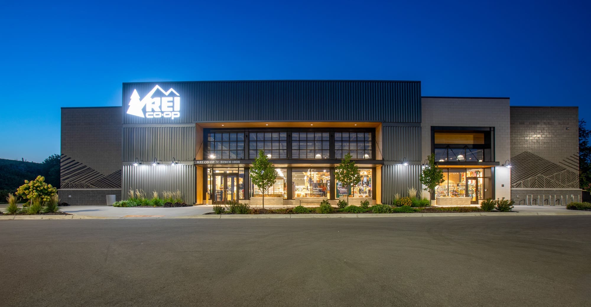 This 20,778-square-foot commercial retail location on Appleton’s west side was completed in December 2019 and serves as REI’s Fox Valley outpost for outdoor gear and apparel. The building features a distinctive dark metal exterior with warm wood accents and a soaring open-concept interior.