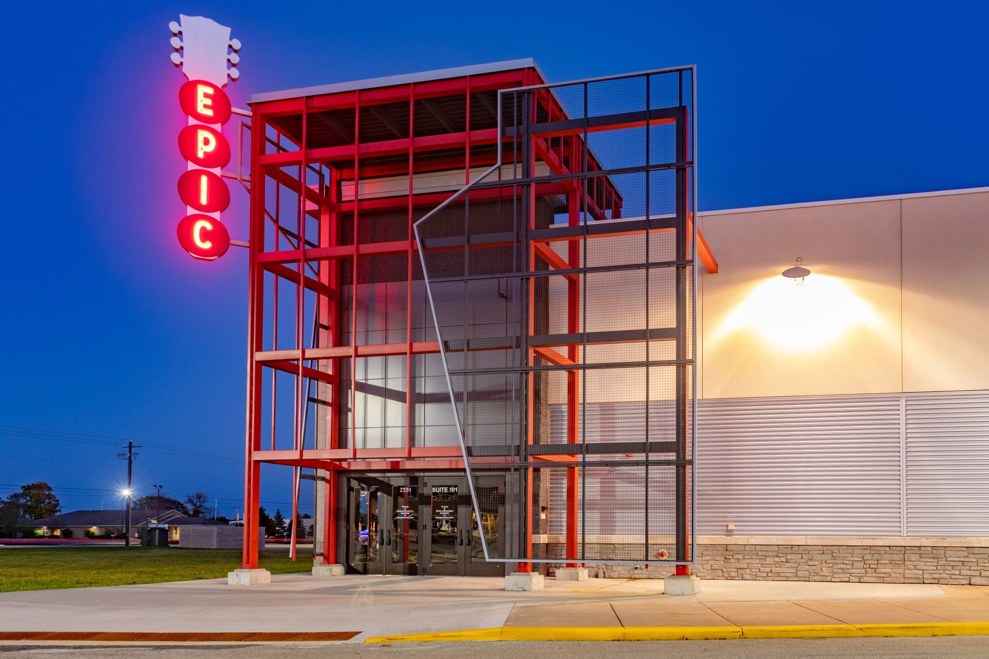 Located in Green Bay, this 25,000-square-foot commercial entertainment venue was completed in April 2021 in a former department store. The transformed space features a live music stage with full production lighting, a multi-tiered mezzanine with bar, lounge areas, billiards, and a multi-purpose sports floor — making it one of Green Bay’s premier commercial event and entertainment destinations.