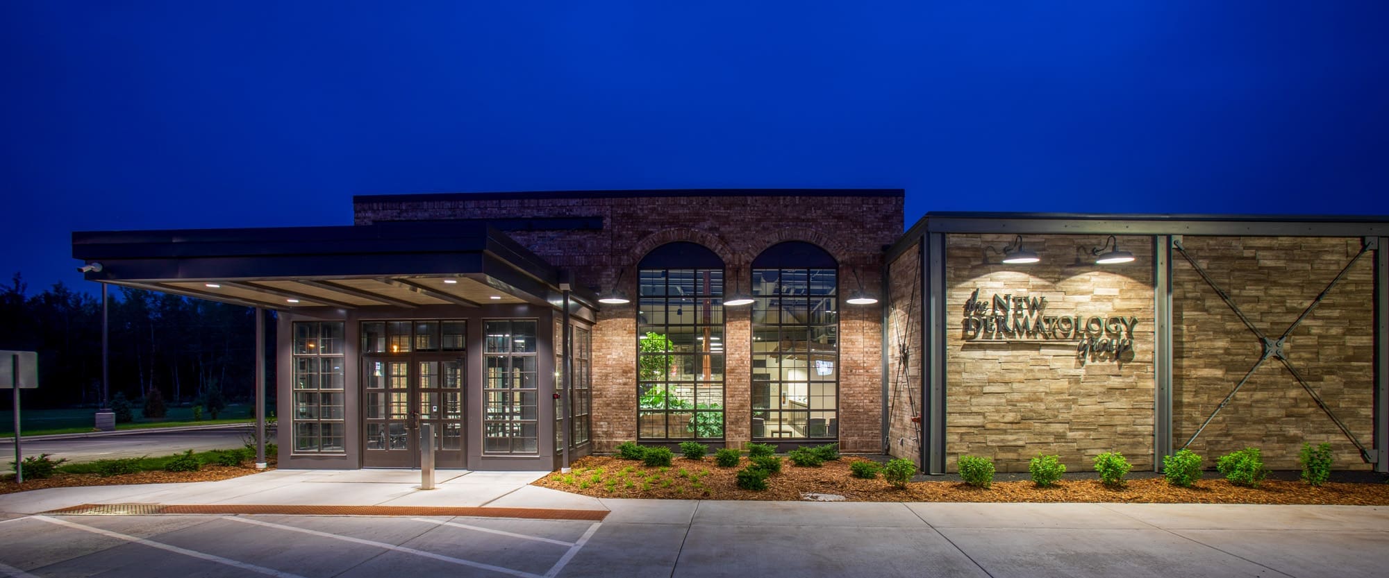 This 14,792-square-foot healthcare facility in Iron Mountain, Michigan was completed in January 2022. The building features a geothermal heating system, solar-powered energy, and a naturally aged stone and brick exterior, with interior highlights including an indoor live tree in the lobby and a pellet stove fireplace.